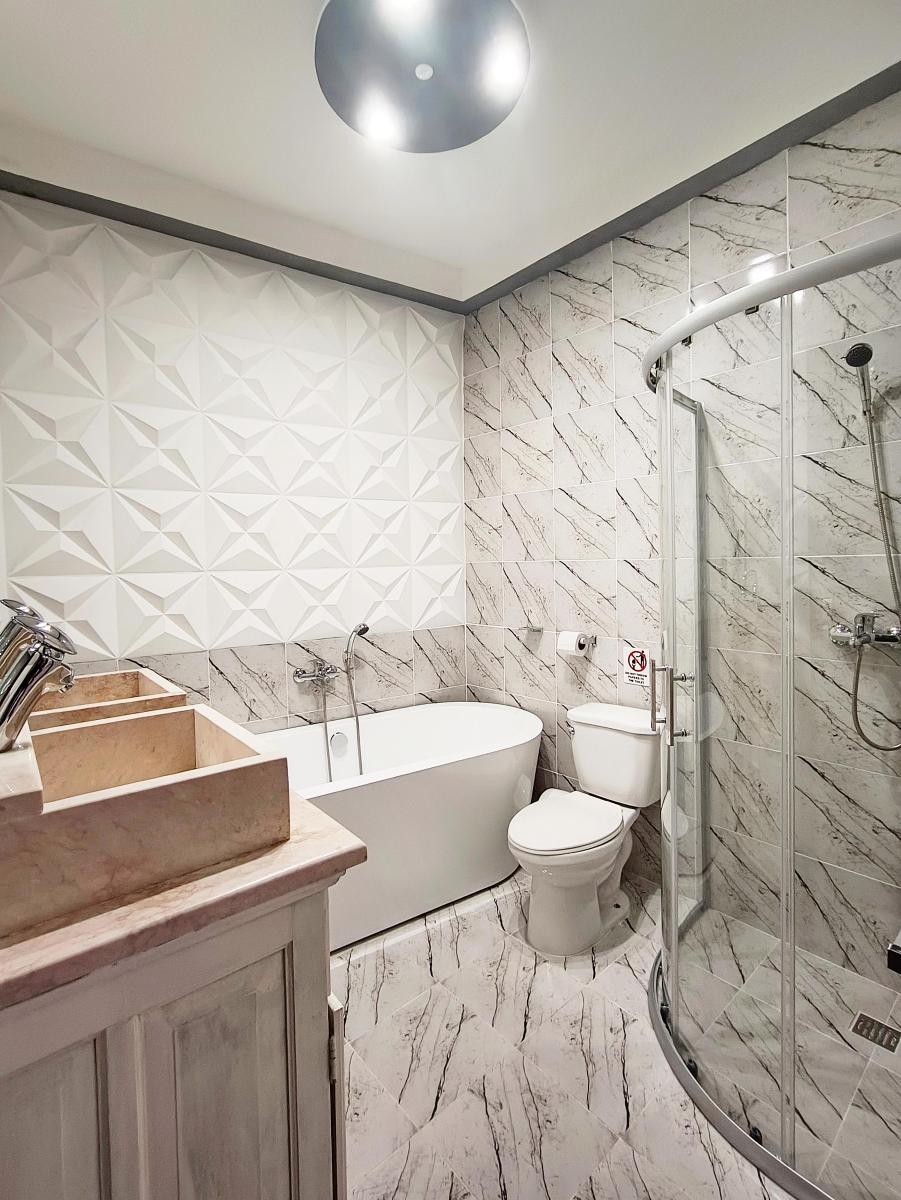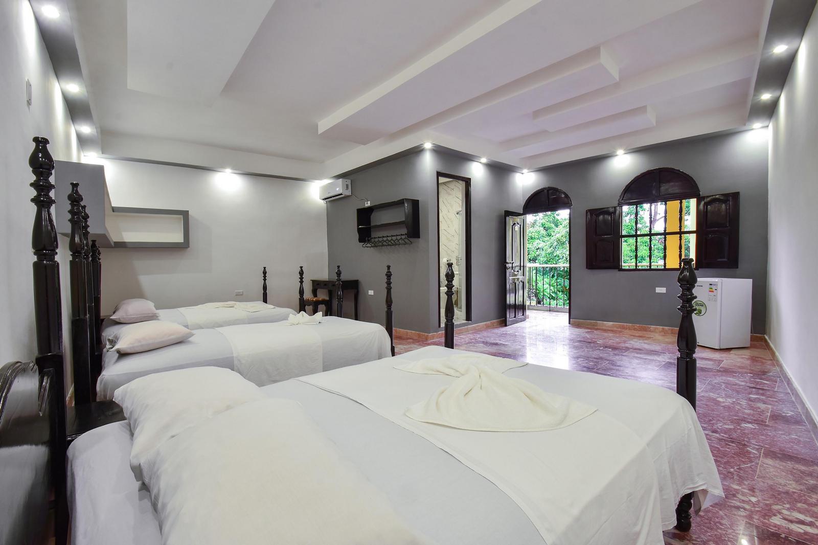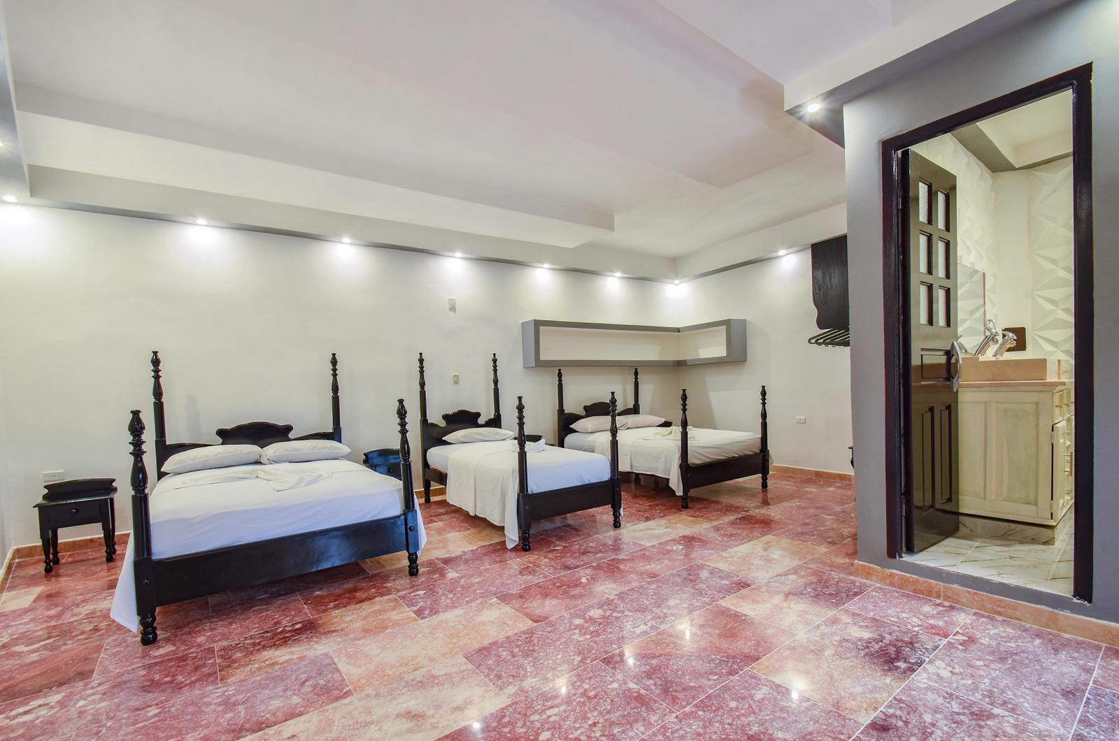 Very spacious room, equipped with everything necessary for ample comfort. It has two double beds and one single bed. Access to patio, air conditioning, mini bar, bedding (pillows, sheets, blankets, bedspreads), fan, hot water 24 hours, private bathroom (inside the room), shower, soap, shower gel and shampoo, sink , toilet paper, towels, 110V and 220V electricity.
